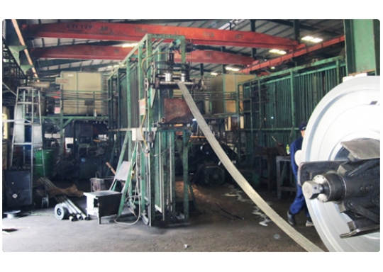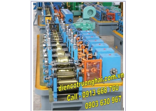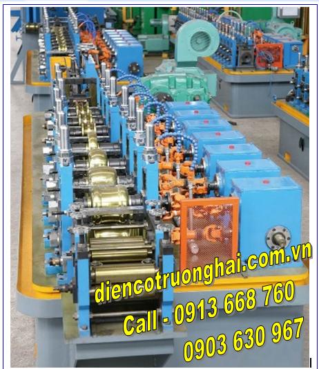 Dây chuyền sản xuất ống thép cỡ trung chạy từ hộp Ø76 trở xuống. Công suất hàn 200KW do Công Ty Trường Hải chế tạo.